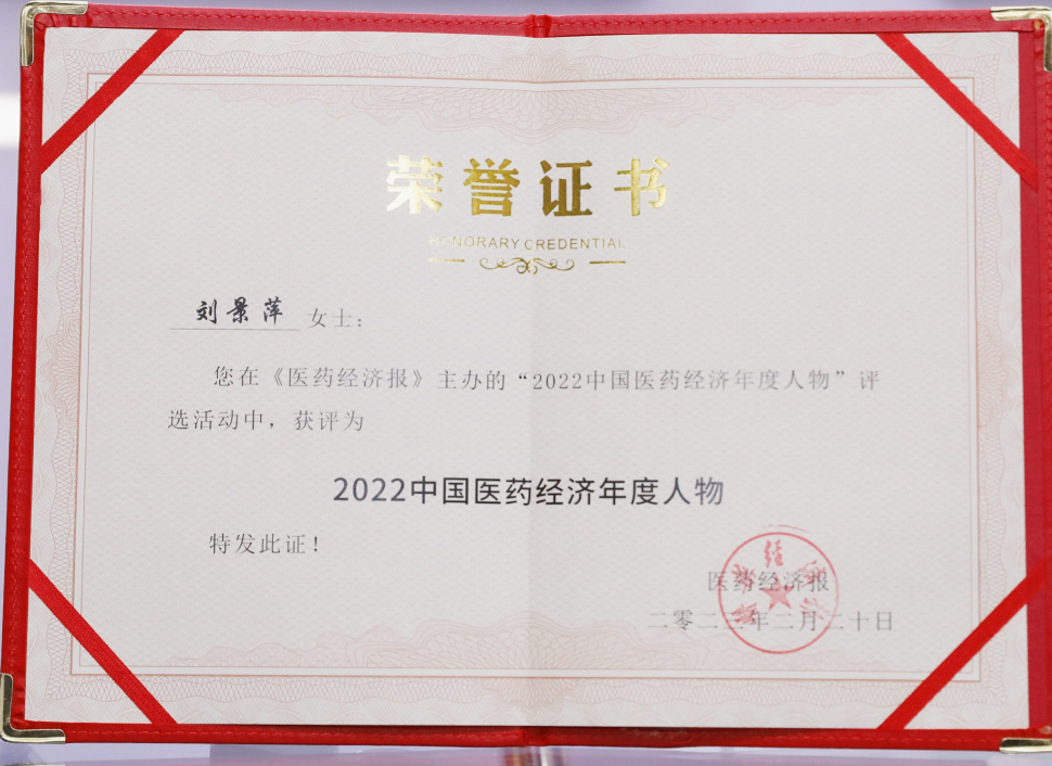 尊龙凯时药业集团董事长刘景萍当选“2022中国医药经济年度人物”